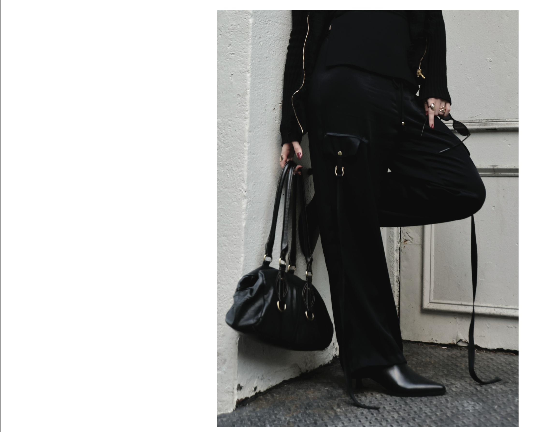 My final project for my second semester at Parsons School of Design studying Fashion Design. Within this project, I challenged myself by creating my own brand, design aesthetic, and a fully made look. Creating my reversible day to night jacket with my satin tie pant.